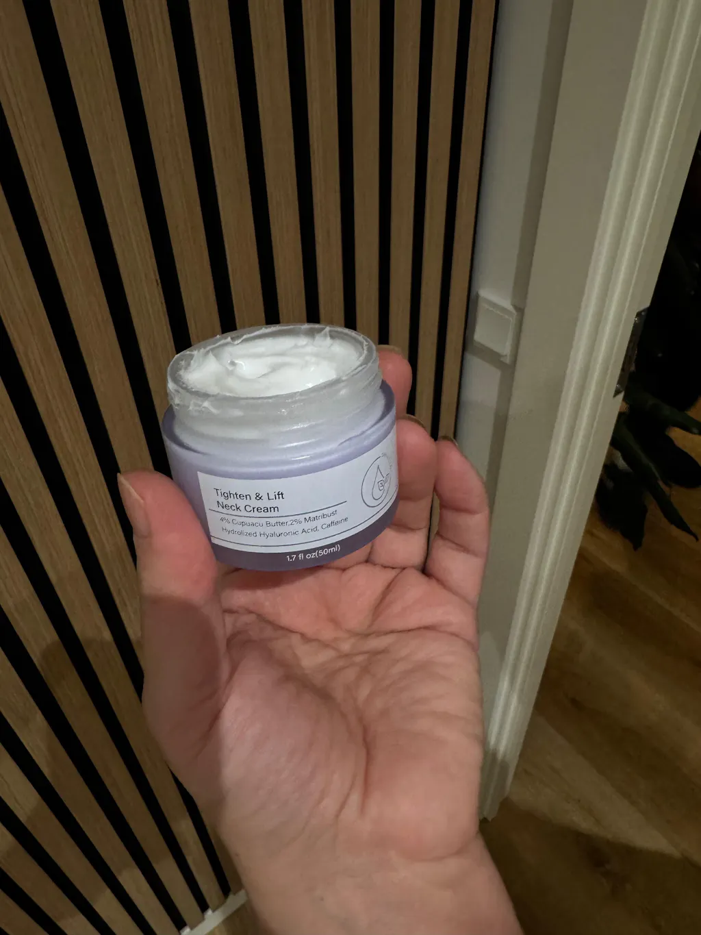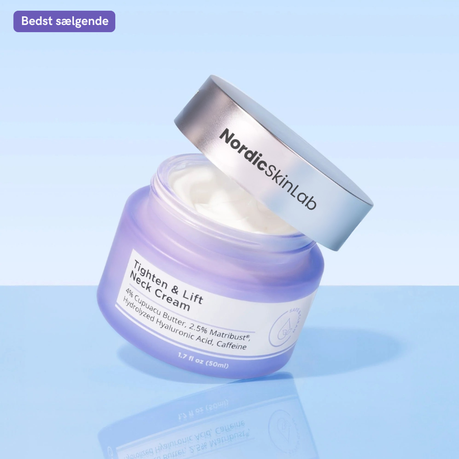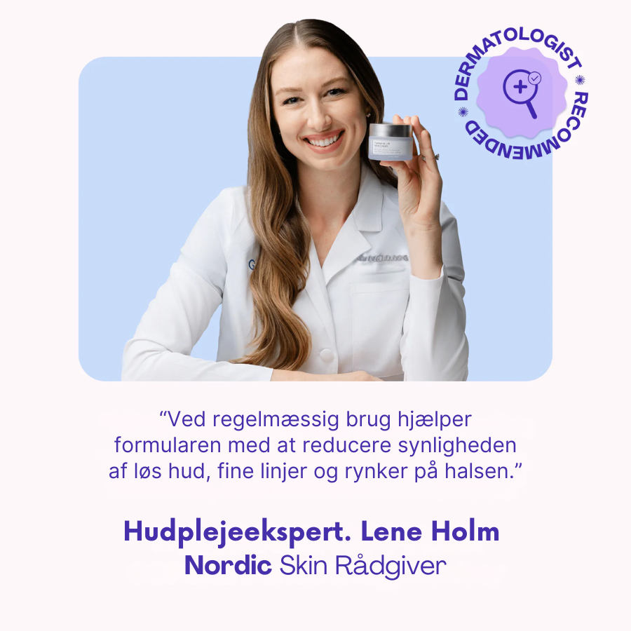 Vores opstrammende halscreme er fyldt med nøje udvalgte ingredienser, som arbejder sammen for at stramme, fugte og udglatte huden på hals og under hagen: